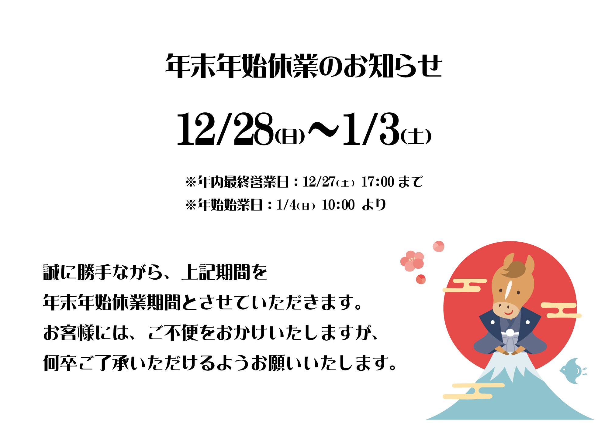 5/7(木)~6/30(火)の期間、縮小営業致します。